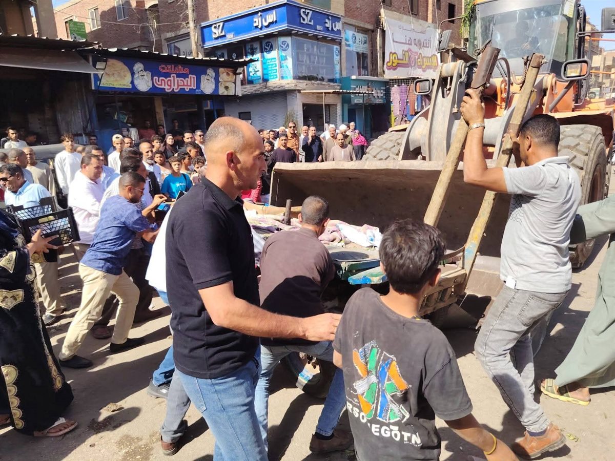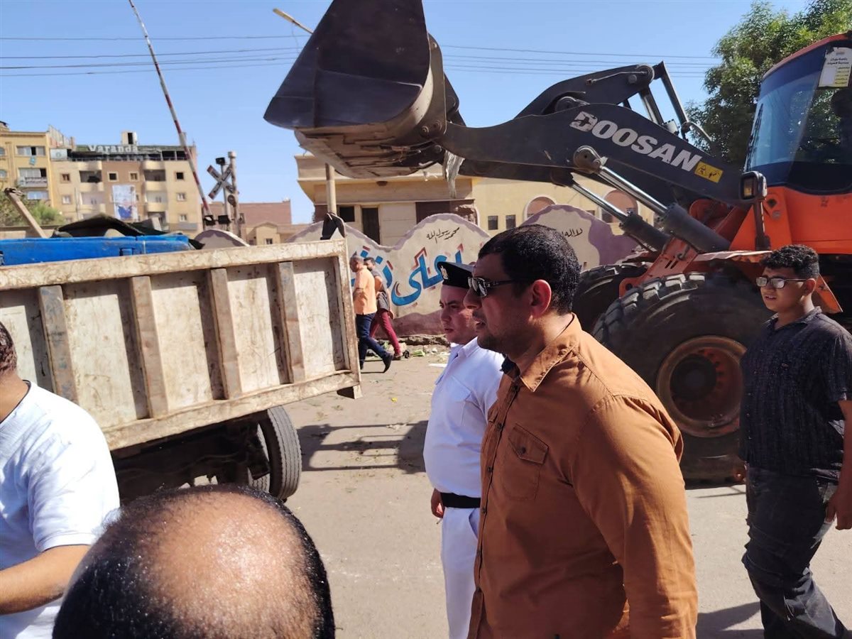 إزالة تعديات بمحيط السوق الحضاري ومزلقان المدينة بالعياط