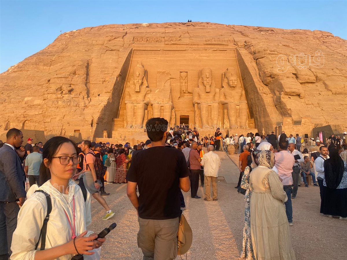 لحظة تعامد الشمس على وجه رمسيس الثانى بمعبد أبوسمبل (فيديو)