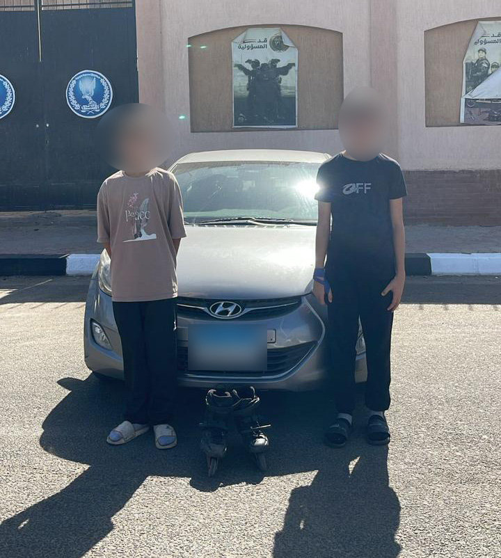 بالفحص تم تحديد وضبط السيارة وقائدها الذى تبين أنه لا يحمل رخصة قيادة، والطفل الآخر الظاهر بمقطع الفيديو، وهما من المقيمين بمحافظة القليوبية.