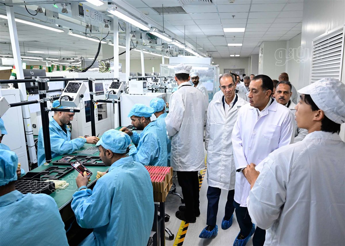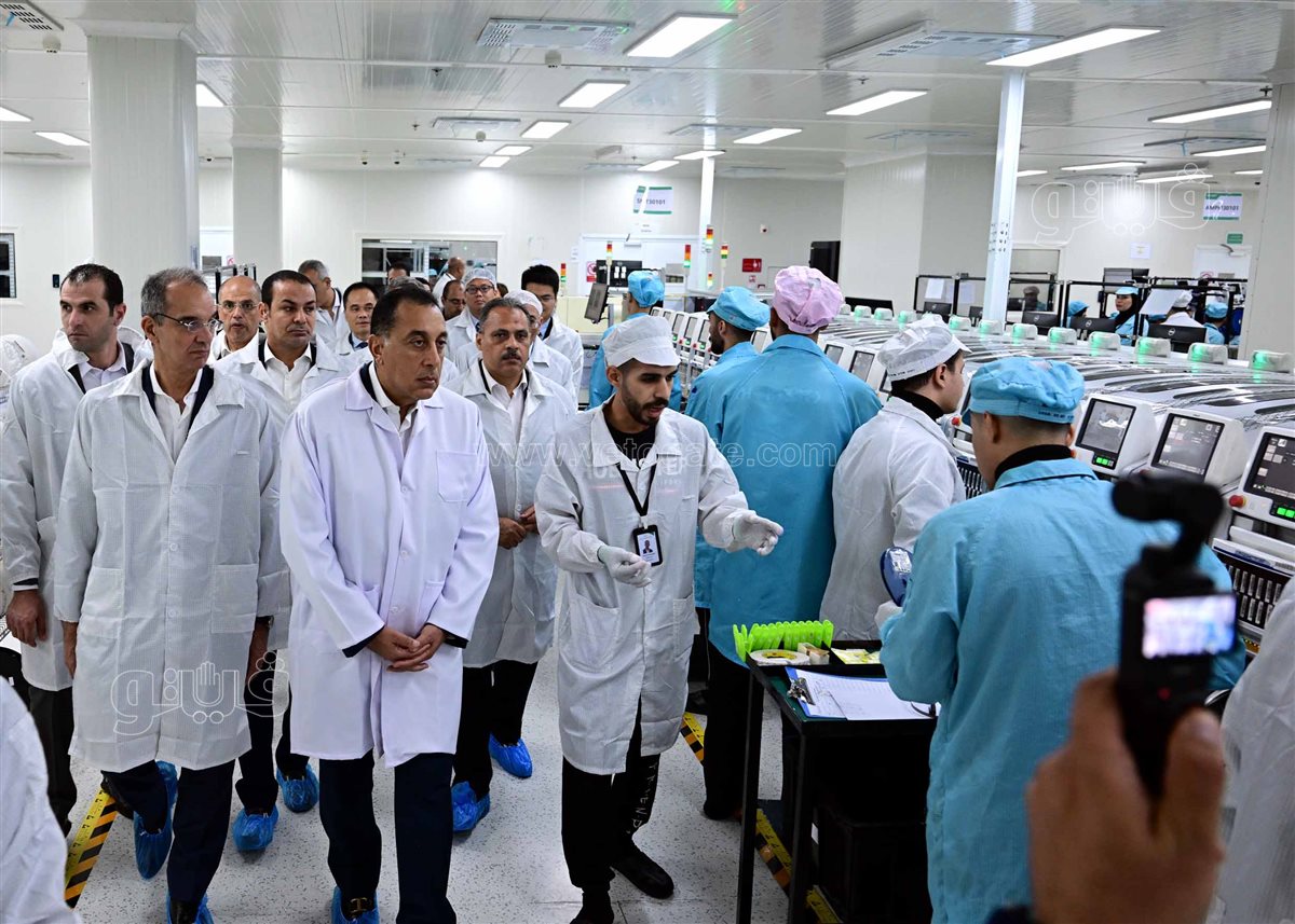 وخلال جولته بالمصنع، تفقد الدكتور مصطفى مدبولي عددا من مراحل الإنتاج، بدءا من تصنيع البوردة وتجميع المكونات السطحية، وكذلك التجميع الأوّلي، ثم اطلّع على مرحلة الاختبار، والتقطيع، والفرن، وتكوين البوردة كمرحلة أولى، انتهاء بالمرحلة الثانية وتتضمن تجهيز البوردة بشكل نهائي، كما مر رئيس الوزراء على غرفة الجودة للاطلاع على أسلوب عملها في مراقبة جودة مراحل الإنتاج، ثم تفقد مرحلة التغليف وهي المرحلة الأخيرة.