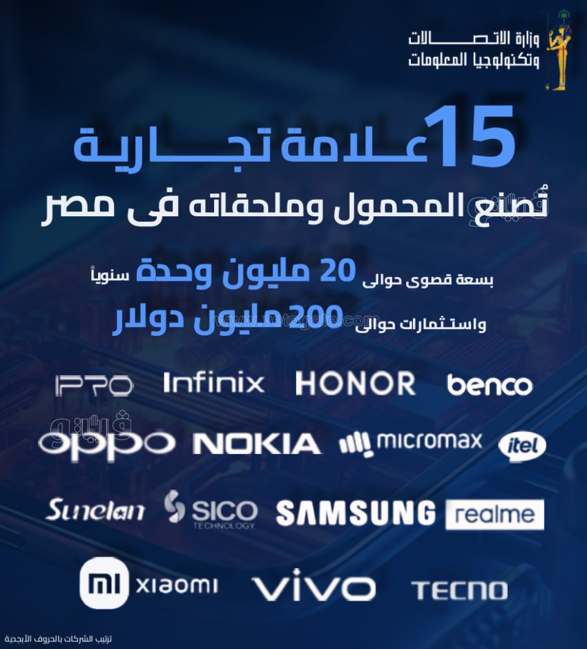 ولفت طلعت إلى حرص وزارة الاتصالات وتكنولوجيا المعلومات على تبني السياسات وتوفير التسهيلات اللازمة لتشجيع الشركات العالمية على التوسع في الإنتاج لتلبية متطلبات السوق المحلية والتصدير للخارج؛ لترسيخ مكانة مصر كمركز إقليميّ لصناعة الإلكترونيات، موضحا أن تطبيق منظومة حوكمة أجهزة الهواتف المحمولة أسهم في تعزيز ثقة الشركات العالمية العاملة في هذه الصناعة ببيئة الاستثمار المصرية، وتحفيزها على ضخ مزيد من الاستثمارات والتوسع في تصنيع الهواتف المحمولة في السوق المصرية، الأمر الذي جعل من مصر مقصدًا جاذبًا للاستثمارات العالمية في صناعة الهواتف المحمولة والإلكترونيات، حيث نجحت في جذب 15 علامة تجارية لتصنيع الهواتف المحمولة في مصر وملحقاتها، بسعة قصوى تصل إلى نحو 20 مليون وحدة سنويا، باستثمارات إجمالية تبلغ حوالي 200 مليون دولار.