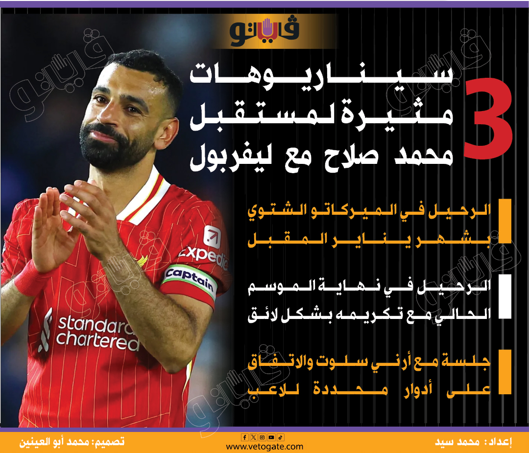 3 سيناريوهات مثيرة لمستقبل محمد صلاح مع ليفربول (إنفوجراف)