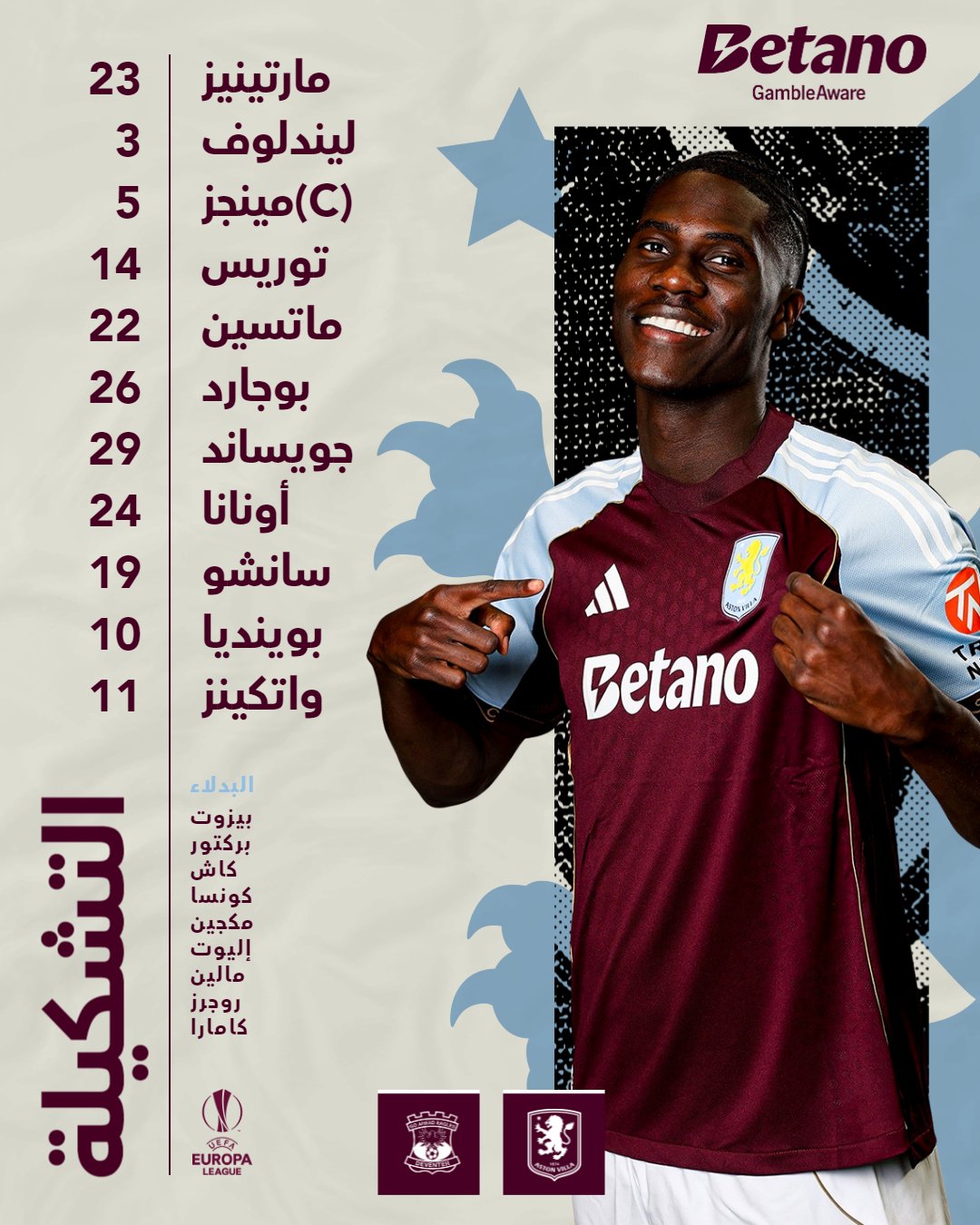 تشكيل أستون فيلا لمواجهة جو أهيد إيجلز في الدوري الأوروبي