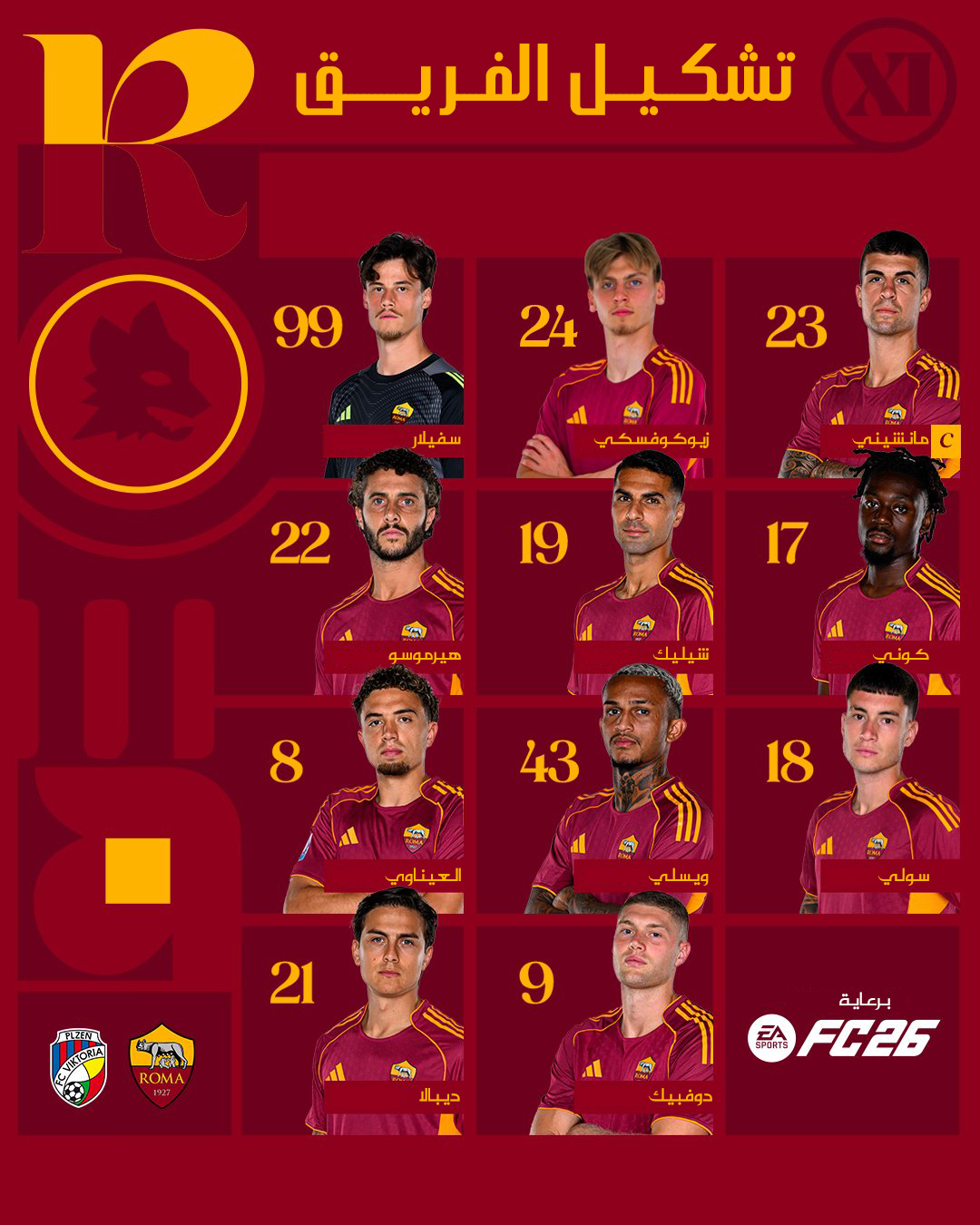 تشكيل روما لمواجهة فيكتوريا بلزن في الدوري الأوروبي