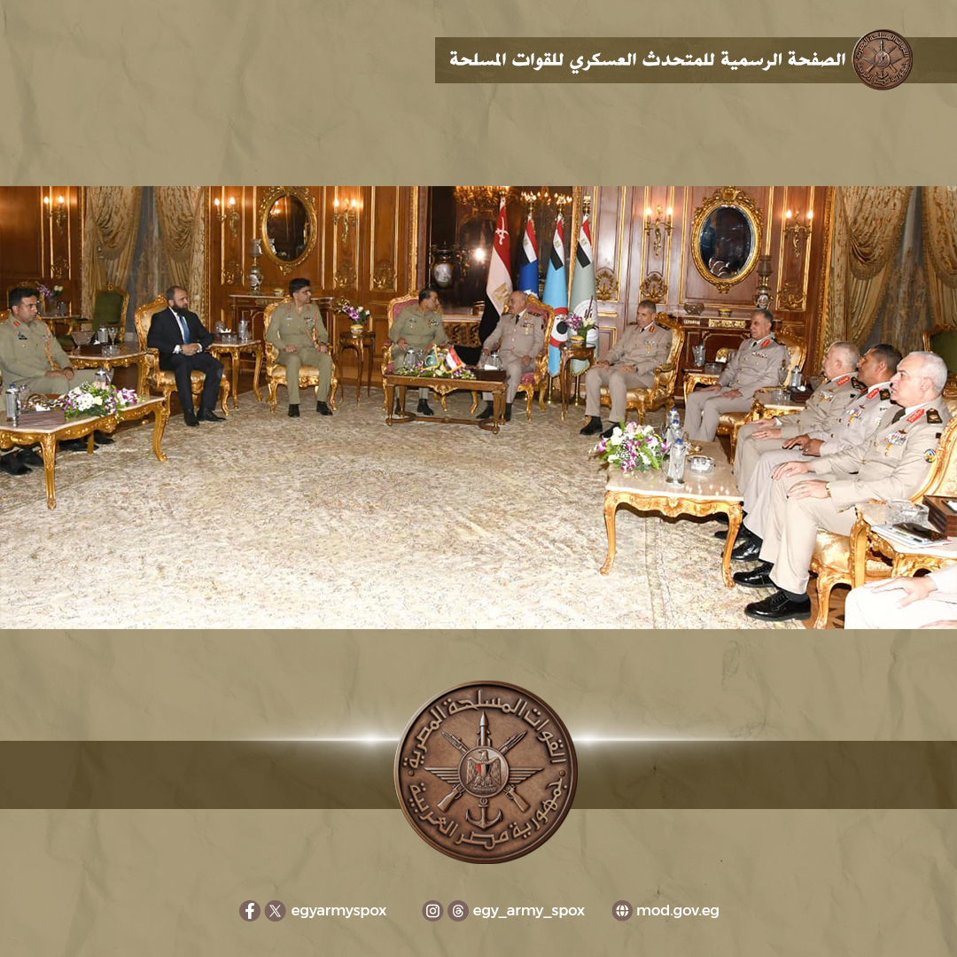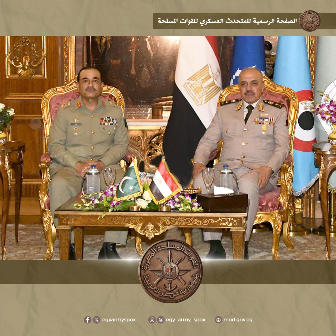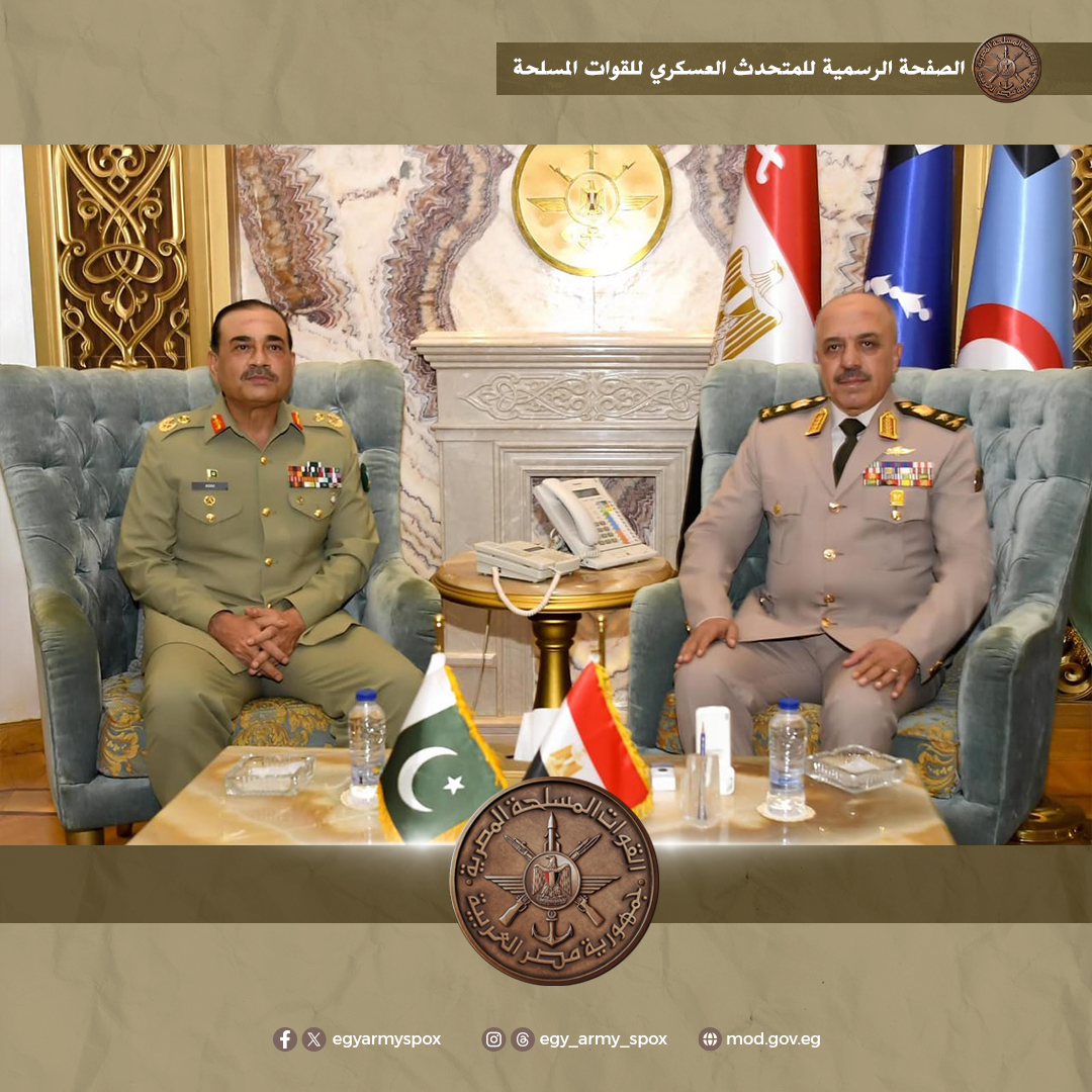 وفى سياق متصل التقى الفريق أحمد خليفة رئيس أركان حرب القوات المسلحة برئيس أركان القوات البرية الباكستانية حيث أجريت له مراسم استقبال رسمية بمقر الأمانة العامة لوزارة الدفاع وعزفت الموسيقات العسكرية السلام الوطنى لكلا البلدين، وتناول اللقاء سبل تعزيز التعاون وتبادل الخبرات فى مختلف المجالات العسكرية بين القوات المسلحة المصرية والباكستانية.