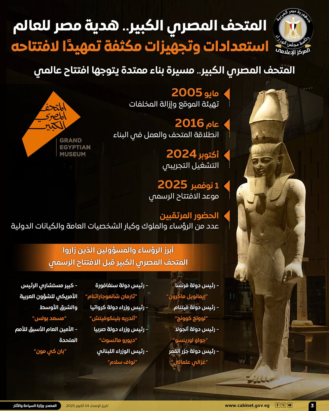 "الوزراء" يكشف استعدادات الحكومة لافتتاح المتحف المصري الكبير (إنفوجراف)