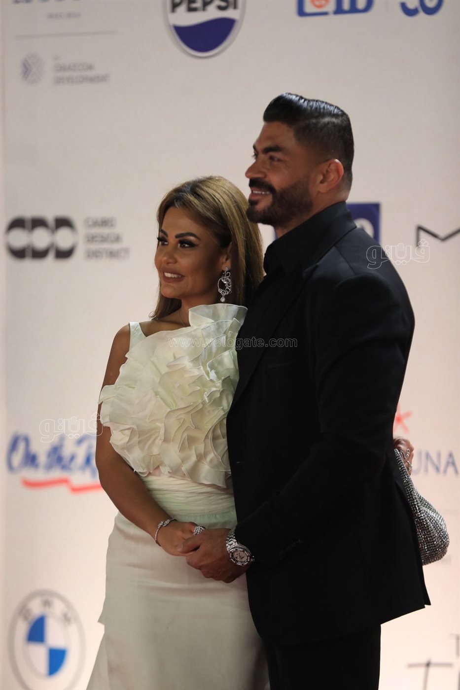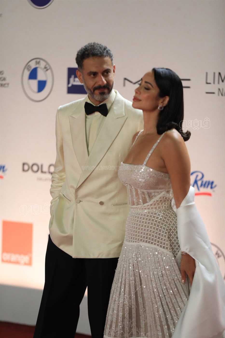 وأيضا خطف الثنائي بسنت شوقي وزوجها الفنان محمد فراج القلوب والأنظار بإطلالات أنيقة باللون الأبيض.