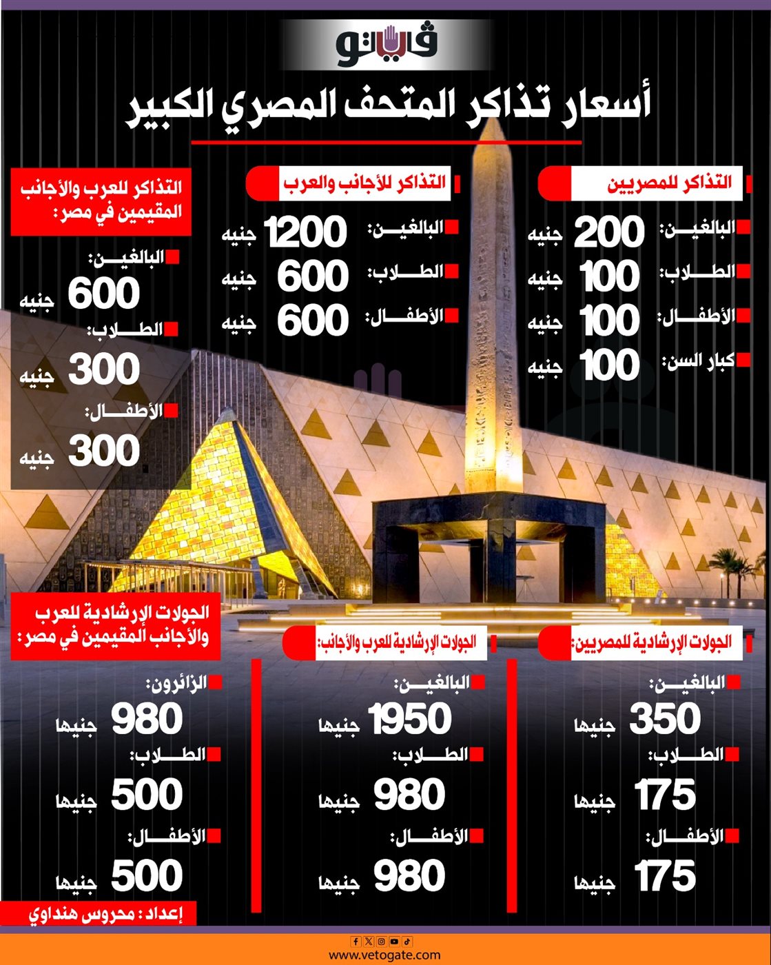 أسعار تذاكر المتحف المصري الكبير (إنفوجراف)