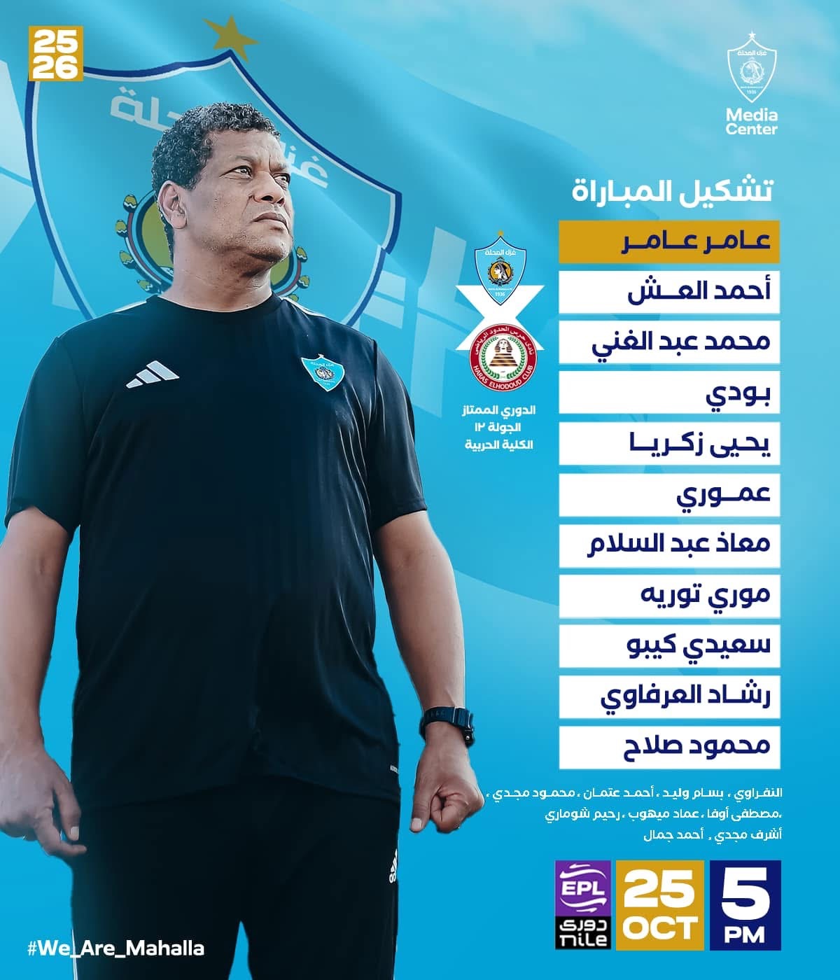 خط الوسط: محمود نبيل، ومحمود مجدي، ومعاذ عبدالسلام، وأحمد عتمان، وموري توريه.