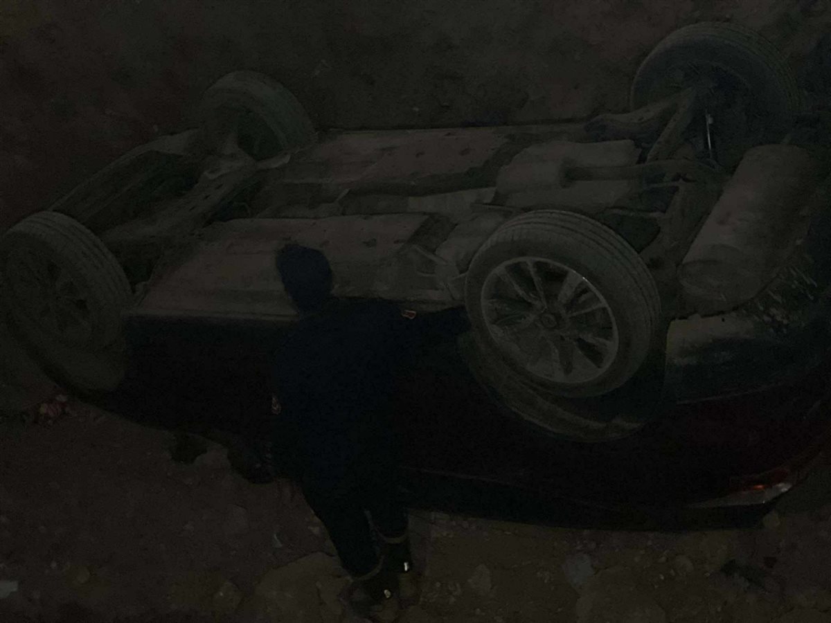 على الفور، انتقلت قوة أمنية ورجال المرور إلى موقع الحادث، وتبين من الفحص أن السيارة انقلبت أثناء سيرها، ما أدى إلى وقوعها داخل حفرة كبيرة.