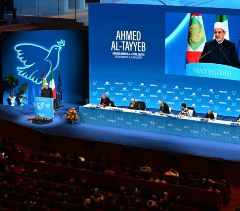 شارك فضيلة الإمام الأكبر أ. د. أحمد الطيب، شيخ الأزهر الشريف، رئيس مجلس حكماء المسلمين، في القمَّة العالميَّة التي تعقدها جمعية سانت إيجيديو بالعاصمة الإيطالية روما تحت عنوان "اللقاء العالمي من أجل السلام: إيجاد الشجاعة لتحقيق السلام"، بحضور الرئيس الإيطالي سيرجيو ماتاريلا، وجلالة الملكة ماتيلد ملكة بلجيكا، وأبرز القادة الدينيين والمفكِّرين من حول العالم.
