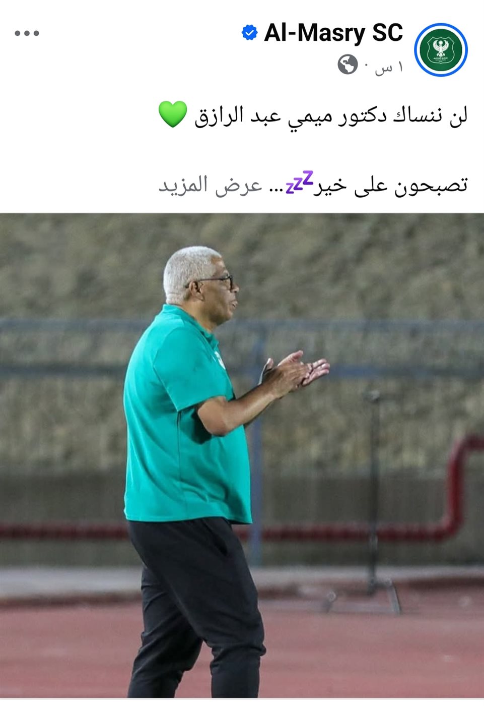 حرص النادي المصري عبر صفحته الرسمية بموقع التواصل الاجتماعي فيسبوك على توجيه رسالة لفقيد النادي ميمي عبد الرازق بعد التأهل لدور المجموعات بالبطولة الكونفدرالية.