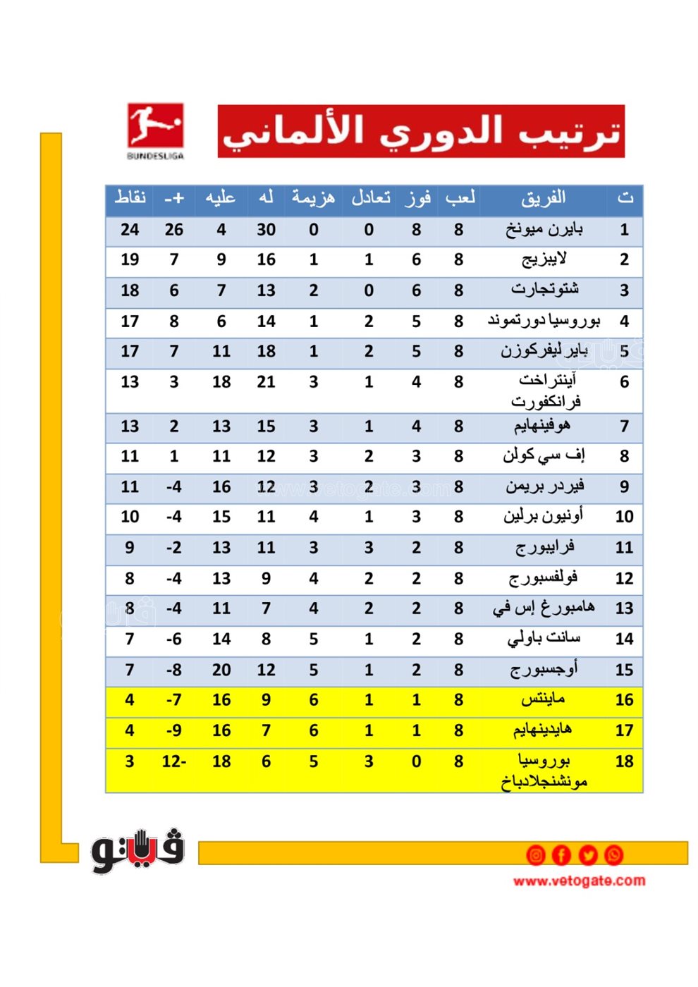 ترتيب الدوري الألماني بعد الجولة الثامنة