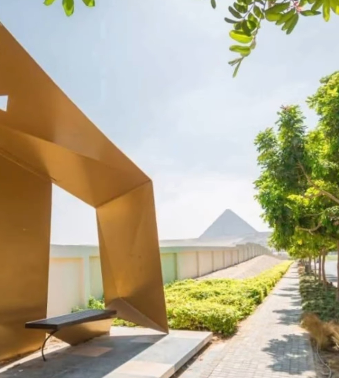 تم اختيار موقع فريد على بعد كيلومترات قليلة من أهرامات الجيزة ليكون المتحف امتدادًا بصريًّا وروحيًا للحضارة التي شيّدتها الأيادي المصرية قبل أكثر من 7000 عام.