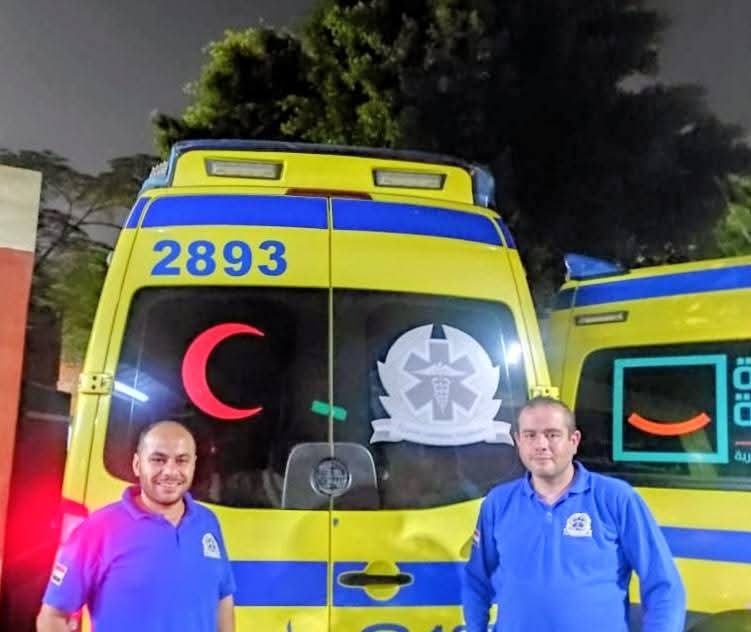 المكالمة كانت كفيلة بإعلان حالة الطوارئ بهيئة الإسعاف المصرية والشرطة المصرية، ممثلة في إدارة الدفاع المدني والمرور، حيث حملت الاستغاثة عبارة مقتضبة حول سيدة حامل تعرضت لنزيف حاد، وتقطن بعقار سكني بحي فيصل بالطابق الثاني عشر، لتنطلق على الفور مركبة إسعاف كود 2893 والمتمركزة بنزلة السمان صوب موقع الاستغاثة، وهي تحمل على متنها المسعف عبد الرحمن محمد أبو شوشة وزميله فني قيادة مركبة إسعاف أحمد أمين محمد.