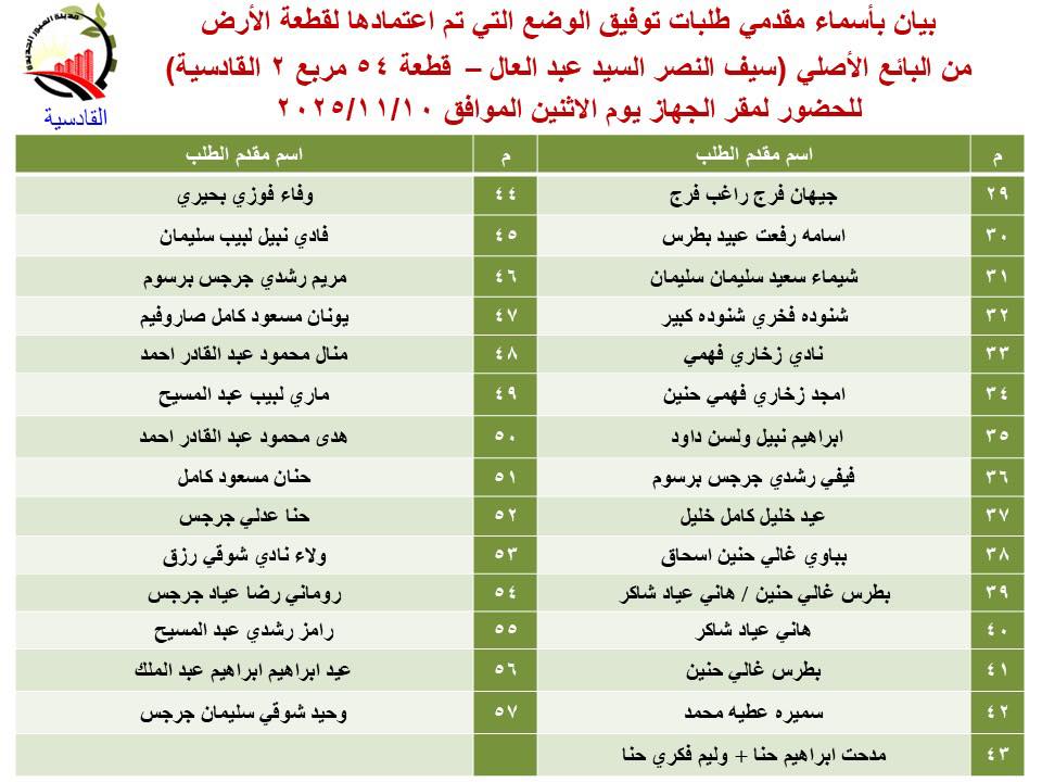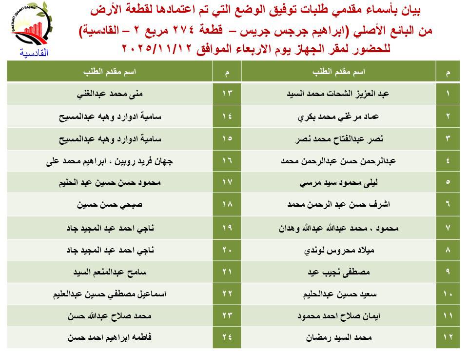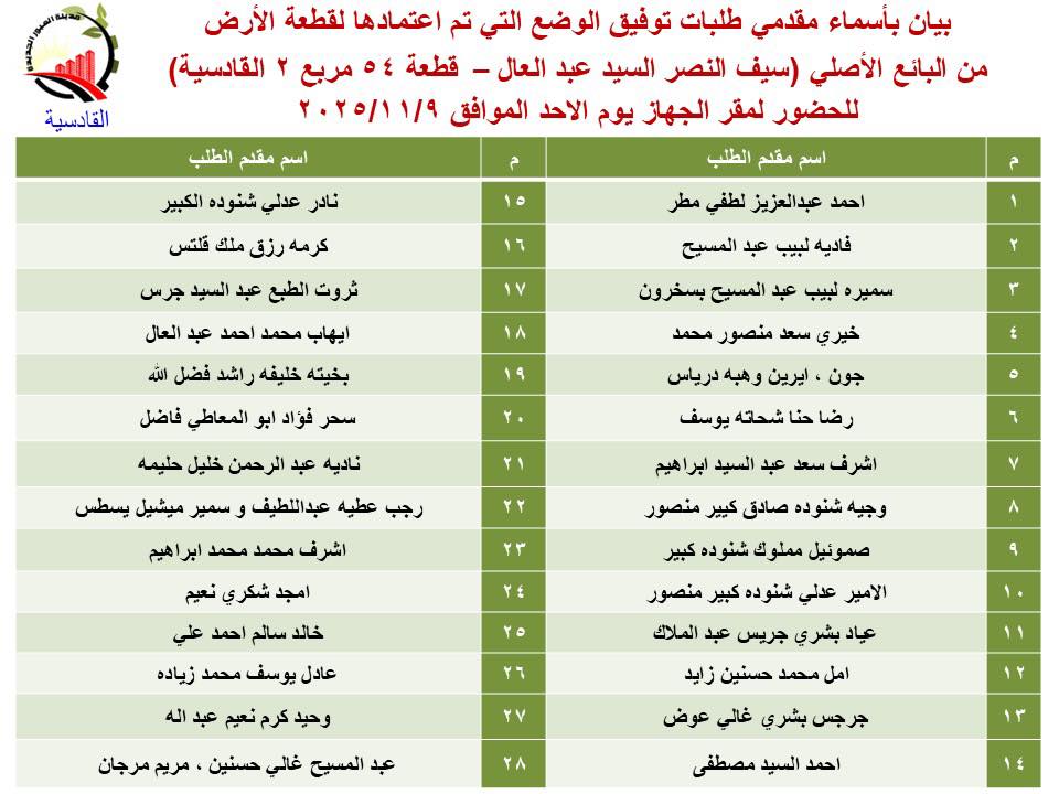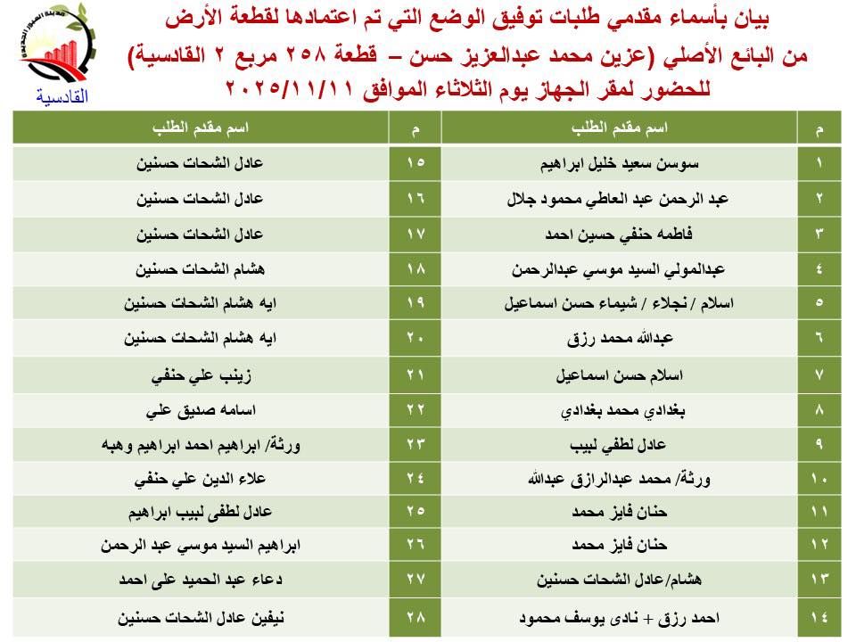 كشفت وزارة الإسكان والمرافق والمجتمعات العمرانية عن تقنين دفعة جديدة من أراضي المواطنين بمدينة العبور الجديدة، الذين تم اعتماد توفيق أوضاع أراضيهم لاستكمال إجراءات التقنين.