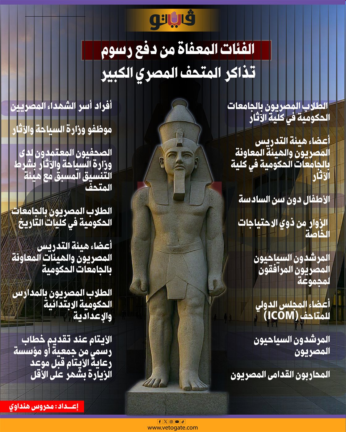 الفئات المعفاة من دفع رسوم تذاكر المتحف المصري الكبير (إنفوجراف)