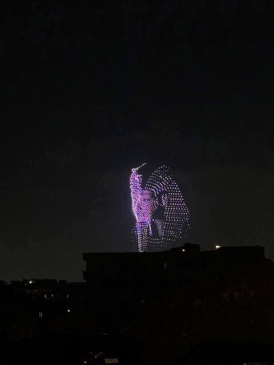 ونشر حساب العاصمة الإدارية الجديدة على “فيس بوك”، مقطع فيديو وصور من بروفة حفل افتتاح المتحف المصري الكبير وعلق قائلا:" هناك عظمة تحدث الأن فوق سماء الأهرامات... بروفة لحفل افتتاح المتحف المصري الكبير".