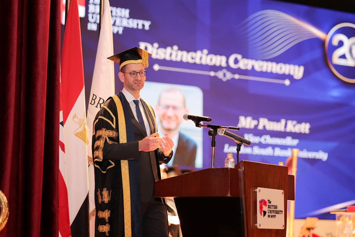 كما أعرب الدكتور بول كيت، رئيس جامعة لندن ساوث بانك، عن فخره بالشراكة الأكاديمية الممتدة مع الجامعة البريطانية منذ أكثر من عقد، والتي أصبحت نموذجًا للتعاون الدولي المثمر في مجالات التعليم والبحث والابتكار، وهنأ الجامعة على ما حققته من نجاحات خلال عشرين عامًا، مؤكدًا تطلع الجامعتين إلى مزيد من التعاون الذي يخدم طلابهما والمجتمع، وموجهًا الشكر لأعضاء هيئة التدريس والأسر التي دعمت الخريجين في رحلتهم نحو النجاح.