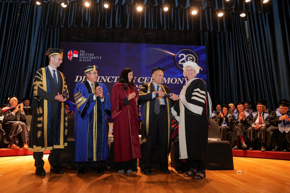 وفي لفتة تؤكد تقدير الجامعة للشخصيات صاحبة الإسهامات البارزة في المجتمع، منحت الجامعة البريطانية الدكتوراه الفخرية لـ يسرية - لوزا ساويرس، رئيس مجلس أمناء مؤسسة ساويرس الاجتماعية، تقديرًا لعطائها الممتد ومبادراتها المؤثرة في خدمة المجتمع والتنمية الاجتماعية، كما منحت لقب الزمالة الرفيعة (Senior Fellowship) لـ أليسون جونز، الرئيس التنفيذي السابق لمؤسسة Advanced HE، تقديرًا لدورها الرائد في تطوير منظومة القيادة بالتعليم العالي عالميًا، بالتزامن مع ختام فعاليات الاحتفال بمرور عشرون عاما على تأسيس الجامعة.