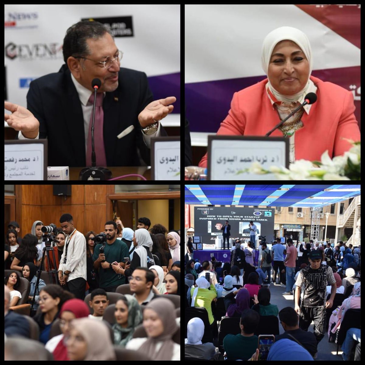 وأوضحت الدكتورة نشوة عقل وكيل كلية الإعلام لشئون خدمة المجتمع وتنمية البيئة، أن الملتقى استعرض رؤية الكلية في ربط الطلبة بسوق العمل، كما تناول أهمية التوجيه المهني والتدريب قبل دخول سوق العمل، وأن هذه النسخة استقطبت حضور واسع من الطلاب والخريجين وأعضاء هيئة التدريس، إلى جانب ممثلين عن الهيئات الإعلامية والمؤسسات الاقتصادية ومجموعة من الفنانين والمبدعين والمؤثرين الذين شاركوا بخبراتهم لإلهام الشباب ودعمهم في مسيرتهم المهنية.