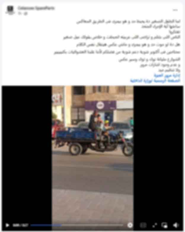 جاء ذلك في إطار جهود وزارة الداخلية لمتابعة ما يُنشر عبر مواقع التواصل الاجتماعي وضبط المخالفات المرورية التي تُعرض حياة المواطنين للخطر.