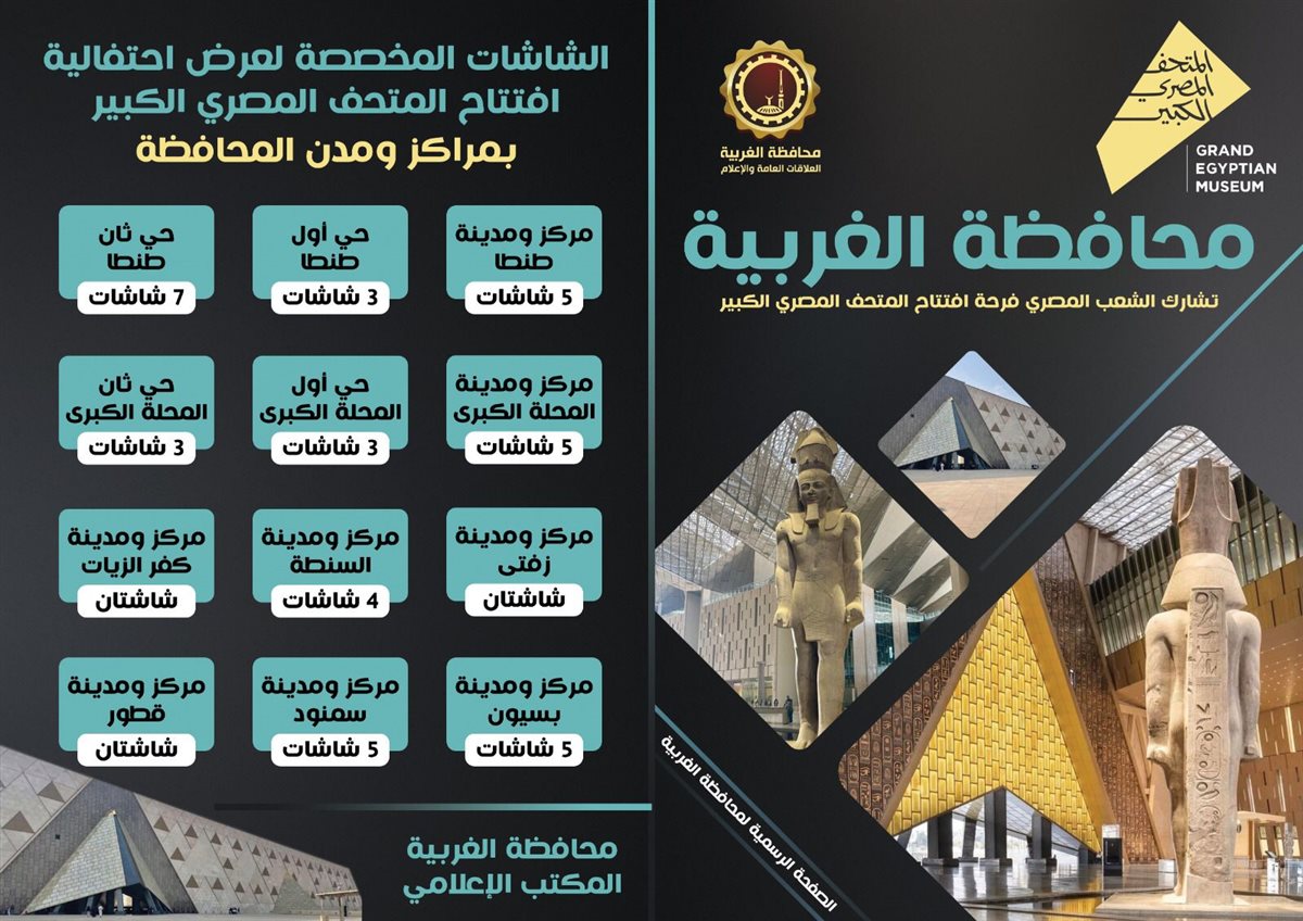 محافظ الغربية: تجهيز 47 شاشة عرض عامة لنقل افتتاح المتحف المصري الكبير بالمحافظة