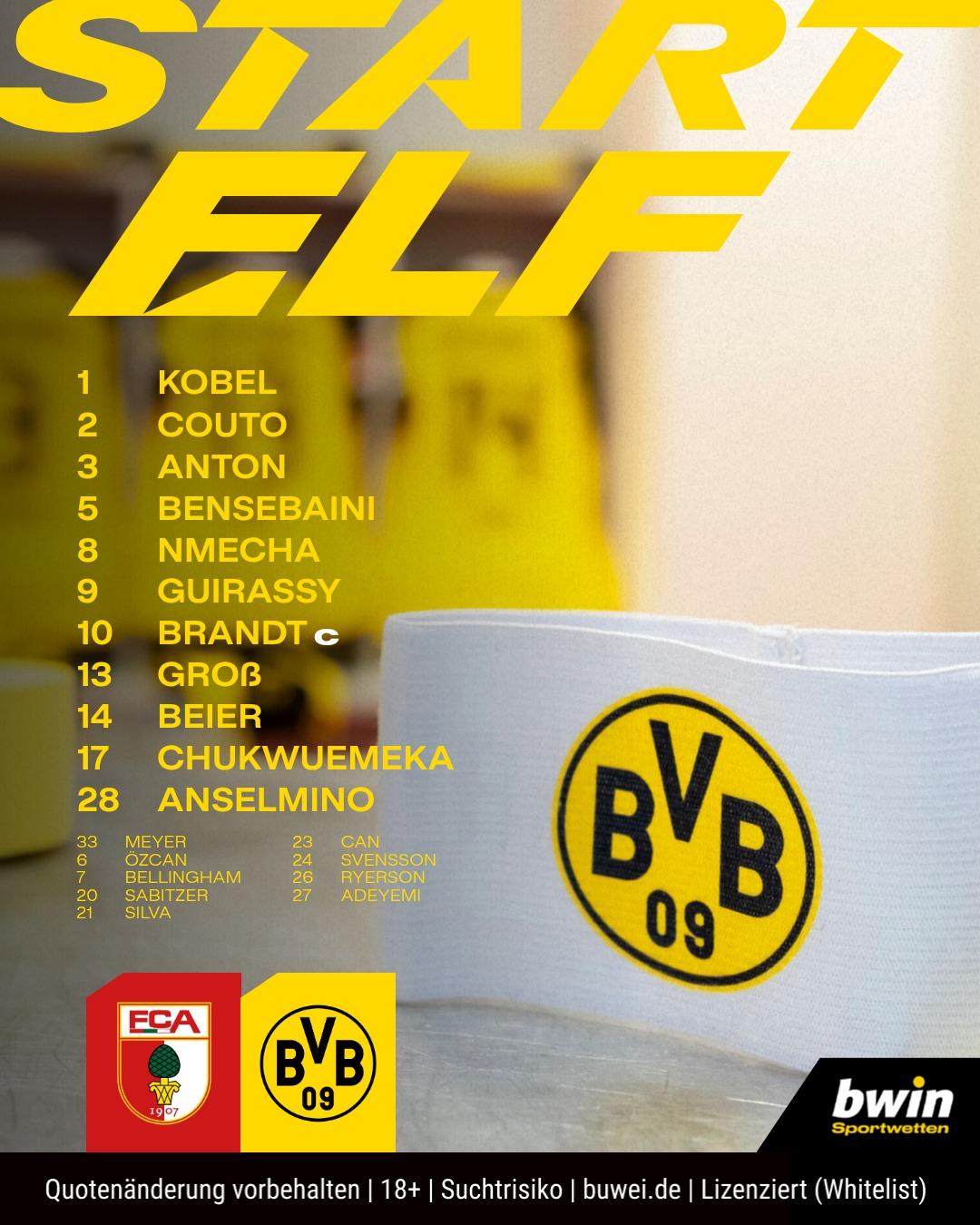 ويحتل أوجسبورج المركز الخامس عشر في جدول ترتيب الدوري الألماني برصيد 7 نقاط، بينما يحتل دورتموند المركز الثاني برصيد 20 نقطة.