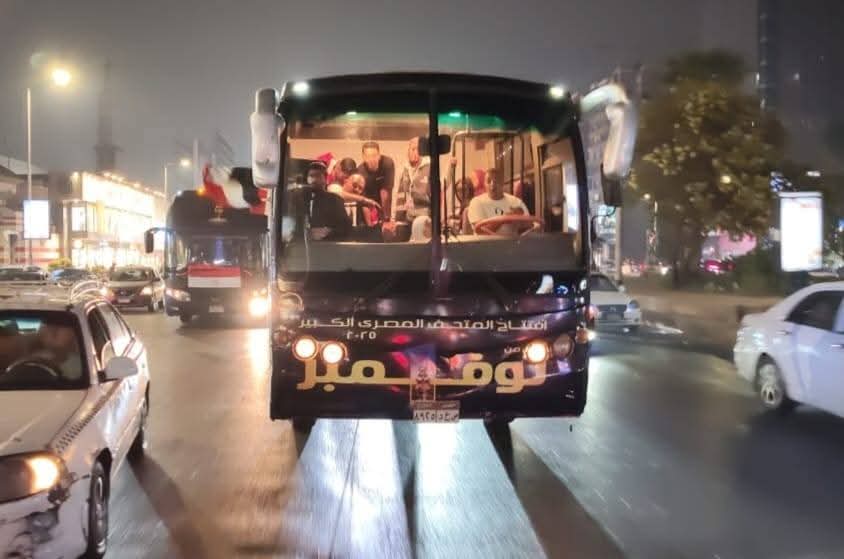 الجيزة تحتفل على طريقتها، حافلات تجوب الشوارع احتفالًا بافتتاح المتحف المصري الكبير (فيديو وصور)