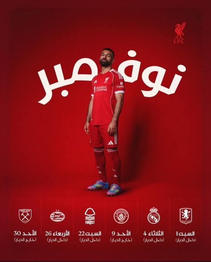 يخوض نادي ليفربول سلسلة من المواجهات القوية خلال شهر نوفمبر 2025 في بطولتي الدوري الإنجليزي الممتاز ودوري أبطال أوروبا، بقيادة نجمه المصري محمد صلاح.