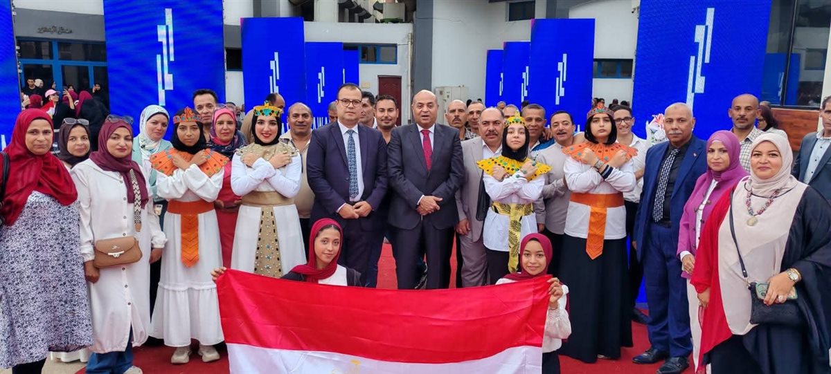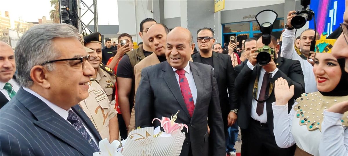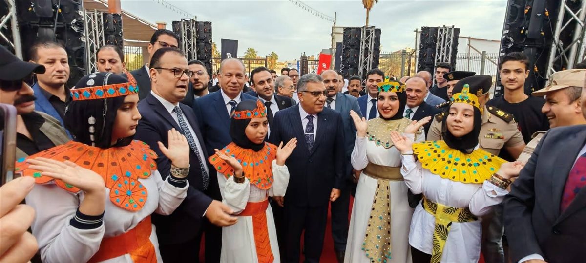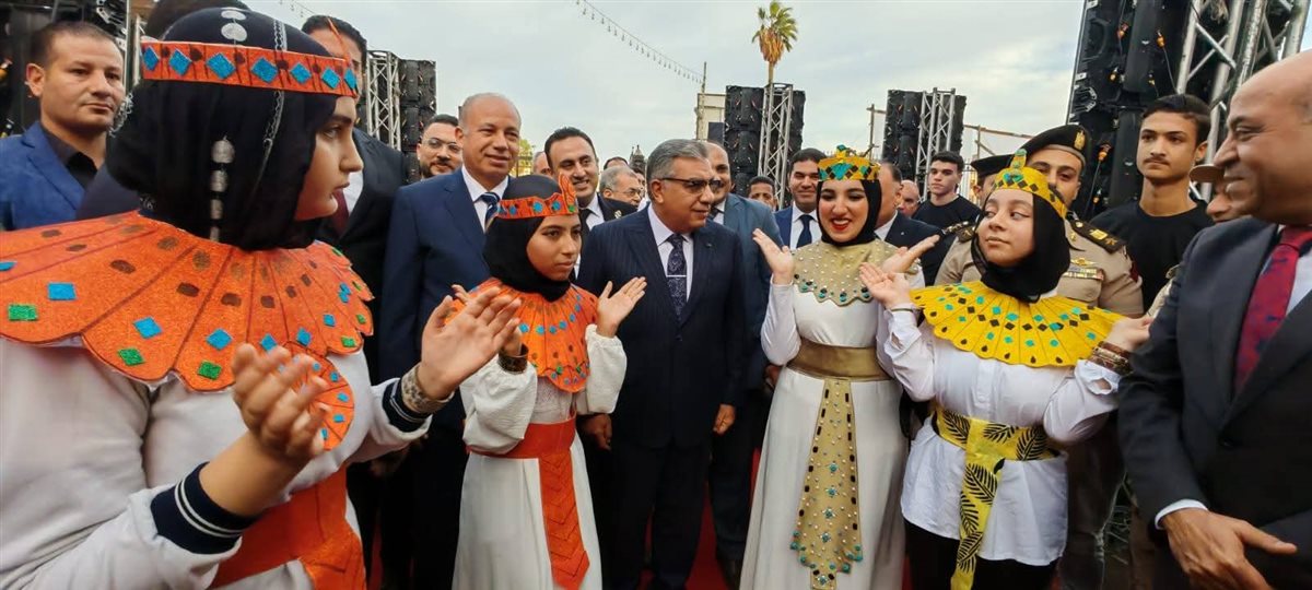 واستقبل محافظ الدقهلية فتيات وطلاب بالزي الفرعوني لتضاهي الاحتفال بالحدث التاريخي العالمي