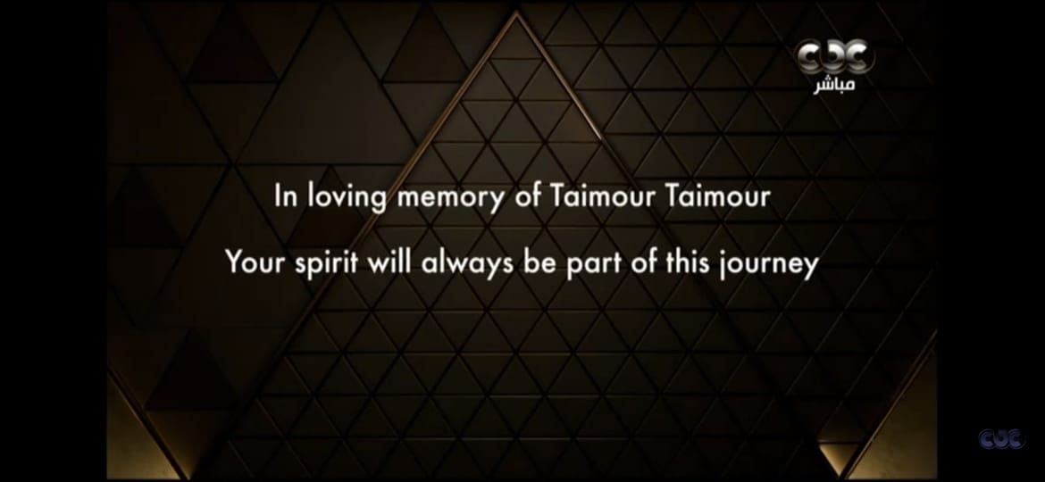 وظهر في نهاية الحفل اسم الراحل تيمور تيمور، حيث كتبت عبارة باللغة الإنجليزية نصها: "In loving memory of Taimour Taimour. Your spirit will always be part of this journey"، وذلك تخليدًا لاسم مدير التصوير الراحل الذي غادر عالمنا في شهر أغسطس عام 2025.