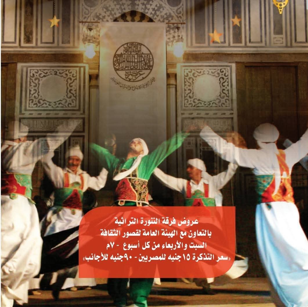 كما تقدم عروض فرقة التنورة التراثية بالتعاون مع الهيئة العامة لقصور الثقافة السبت والأربعاء من كل أسبوع وذلك بسعر التذكرة 15 جنيها للمصريين و90 جنيها للأجانب.