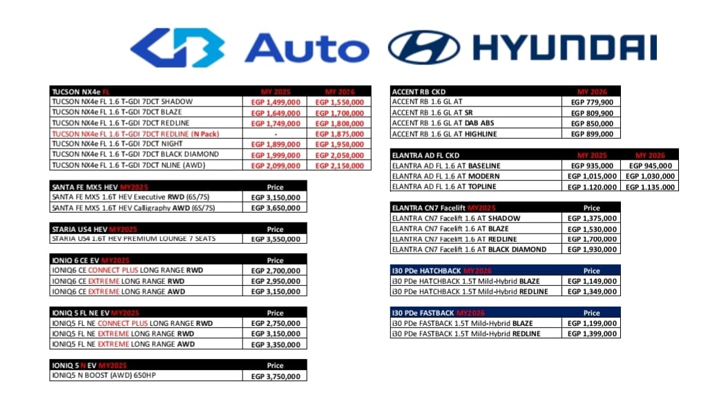 كشف الوكيل المحلي للعلامة التجارية هيونداي في مصر، عن قيمة التخفيضات التي لحقت بأسعار سيارات هيونداي توسان موديل 2026 والتي بلغت نحو 100 ألف جنيه في السوق المحلية.