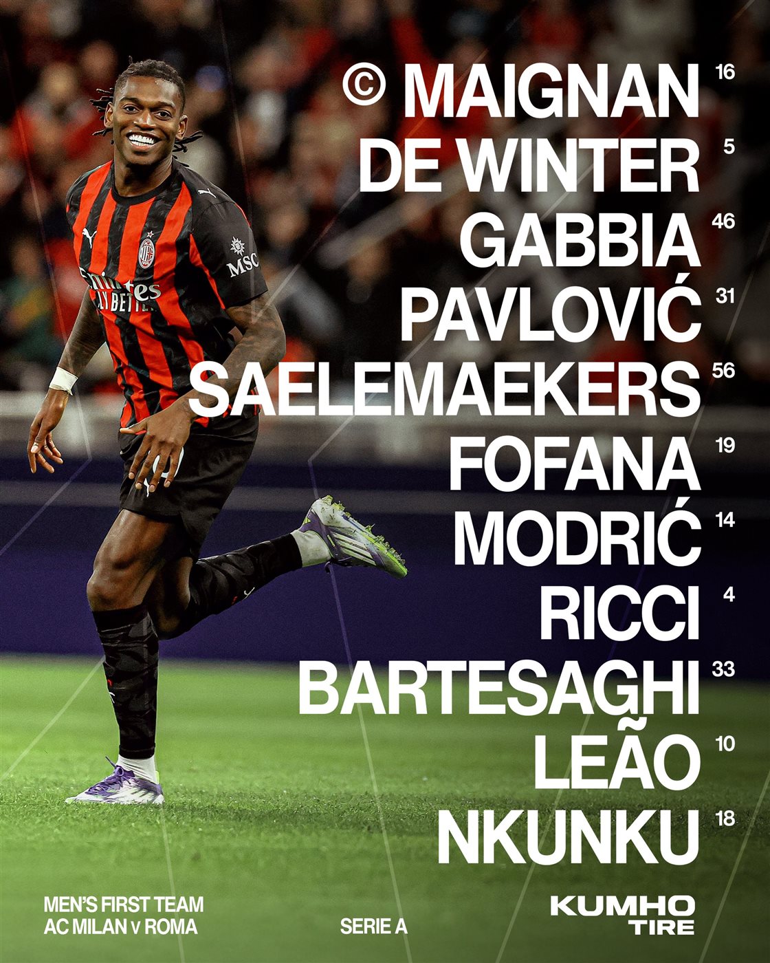تشكيل مباراة ميلان ضد روما في الدوري الإيطالي