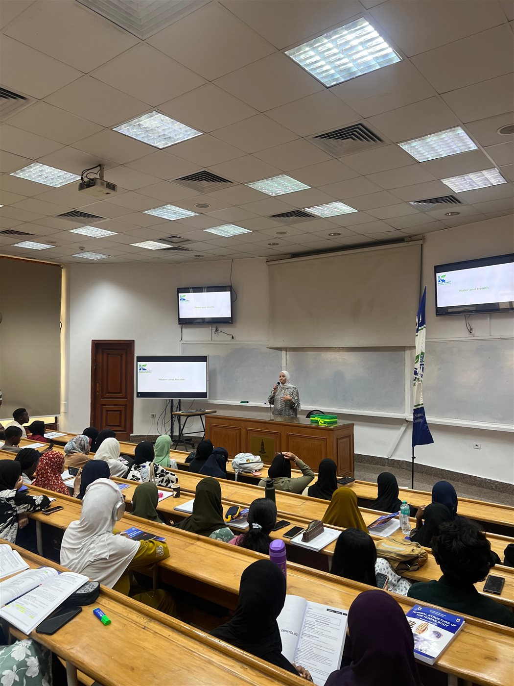 كما شاركت الدكتورة رانيا زايد ميدانيًا في فعاليات الحملة، والتي تضمنت المرور على الطلاب المصريين والوافدين داخل المدرجات والقاعات الدراسية للتعريف بأنشطة المكتب الأخضر، إلى جانب تنظيم ندوة تثقيفية بعنوان “المياه والصحة” ركزت على العلاقة الوثيقة بين جودة المياه وصحة الإنسان، وطرق الحفاظ على موارد مصر المائية وترشيد استهلاكها.