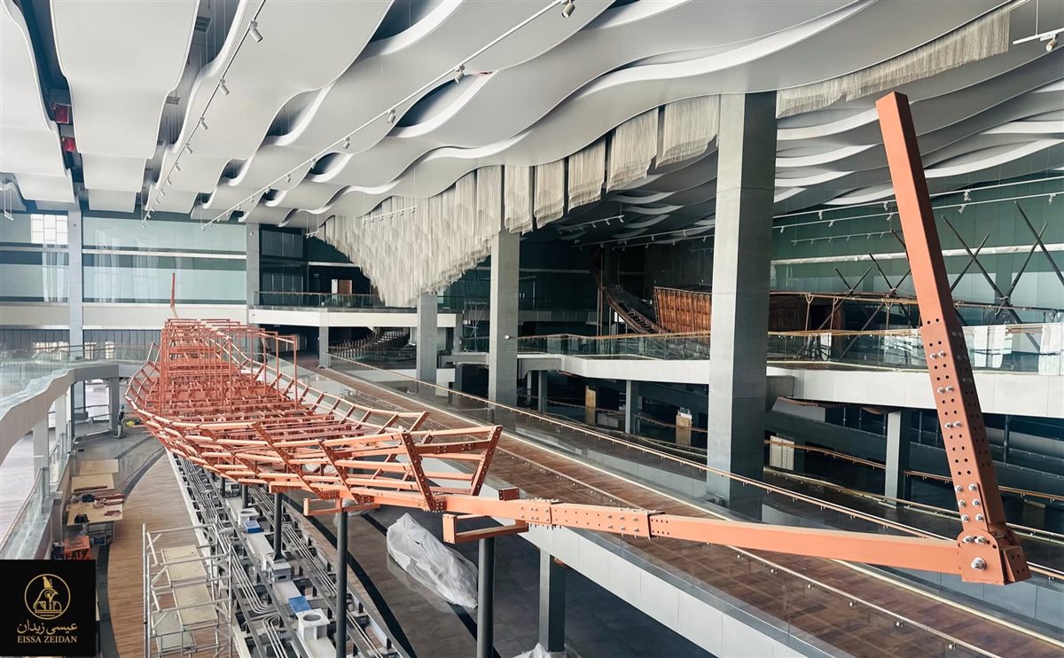 قبل عرضها أمام الجمهور، أول صور لمركب خوفو من مقرها الجديد بالمتحف المصري الكبير