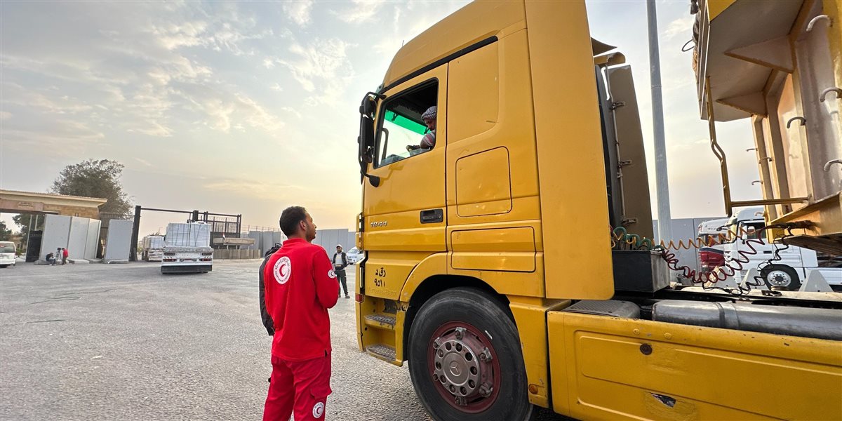 ويتواجد الهلال الأحمر المصري كآلية وطنية لتنسيق وتفويج المساعدات إلى غزة، على الحدود منذ بدء الأزمة، حيث لم يتم غلق معبر رفح من الجانب المصري نهائيًا، وواصل تأهبه فى كافة المراكز اللوجستية وجهوده المتواصلة لدخول المساعدات التي بلغت أكثر من نصف مليون طن من المساعدات الإنسانية والإغاثة، وذلك بجهود 35 ألف متطوع بالجمعية.