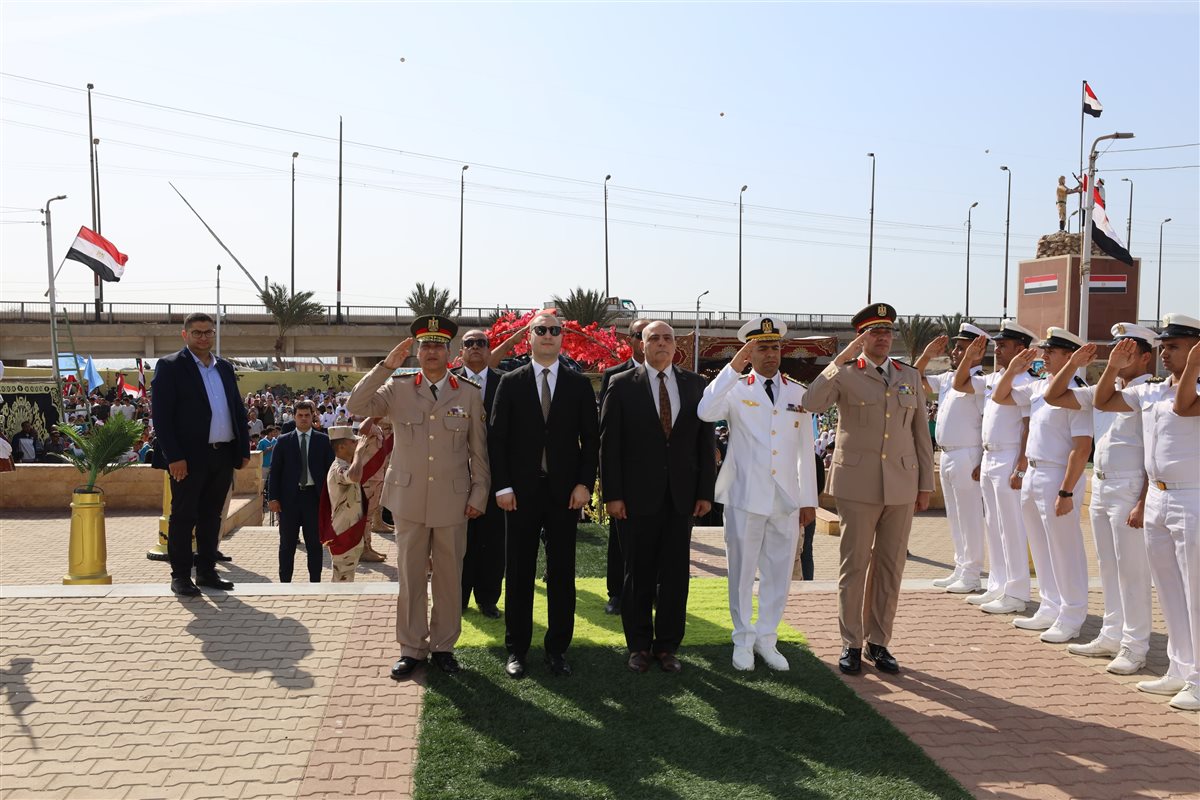 محافظ كفر الشيخ يضع أكاليل الزهور على النصب التذكاري لشهداء معركة البرلس البحرية