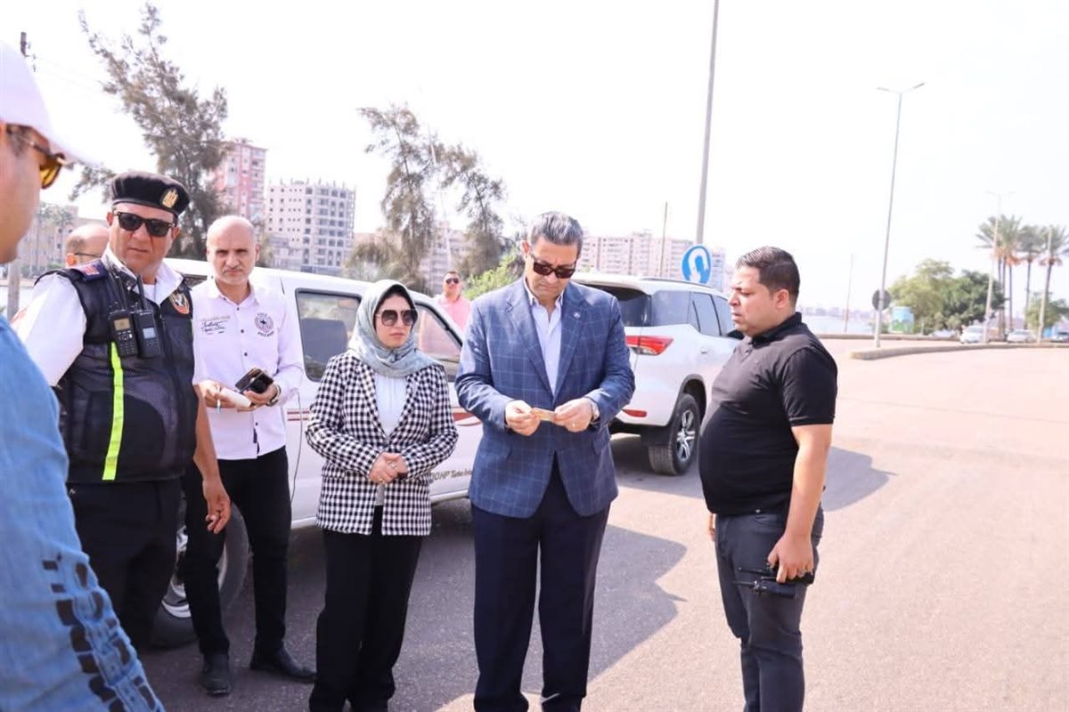 خلال جولته بشوارع دمياط، المحافظ يضبط سيارة تسير عكس الاتجاه