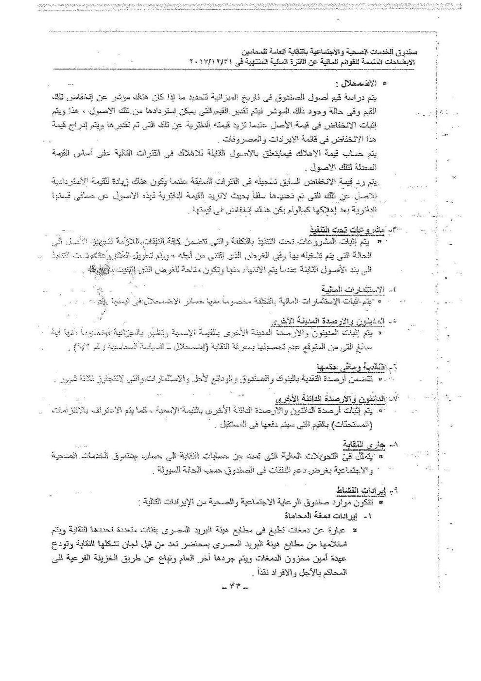 نشرت نقابة المحامين، من خلال مركزها الإعلامي الميزانيات الكاملة للنقابة عن عام 2017 حتى عام ٢٠٢٤، والتي تتضمن تفاصيل القوائم المالية الخاصة بالرعاية الصحية.