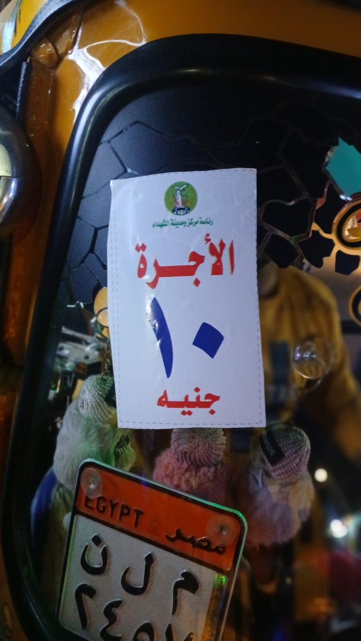 10 جنيهات، وضع ملصقات بتعريفة ركوب موحدة على التوكتوك بالشهداء في المنوفية