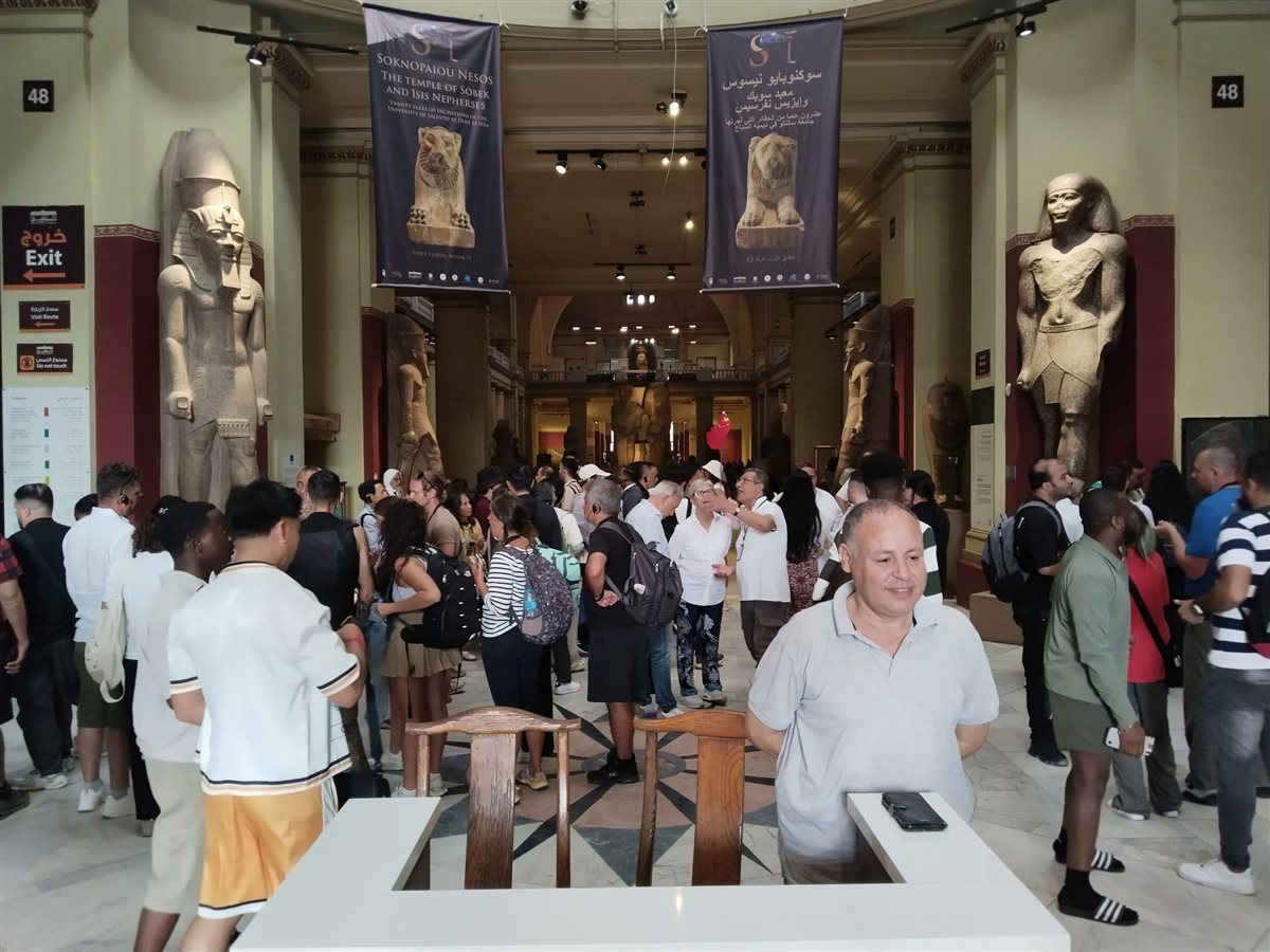 إقبال جماهيري كبير على زيارة قاعات المتحف المصري بالتحرير (صور)