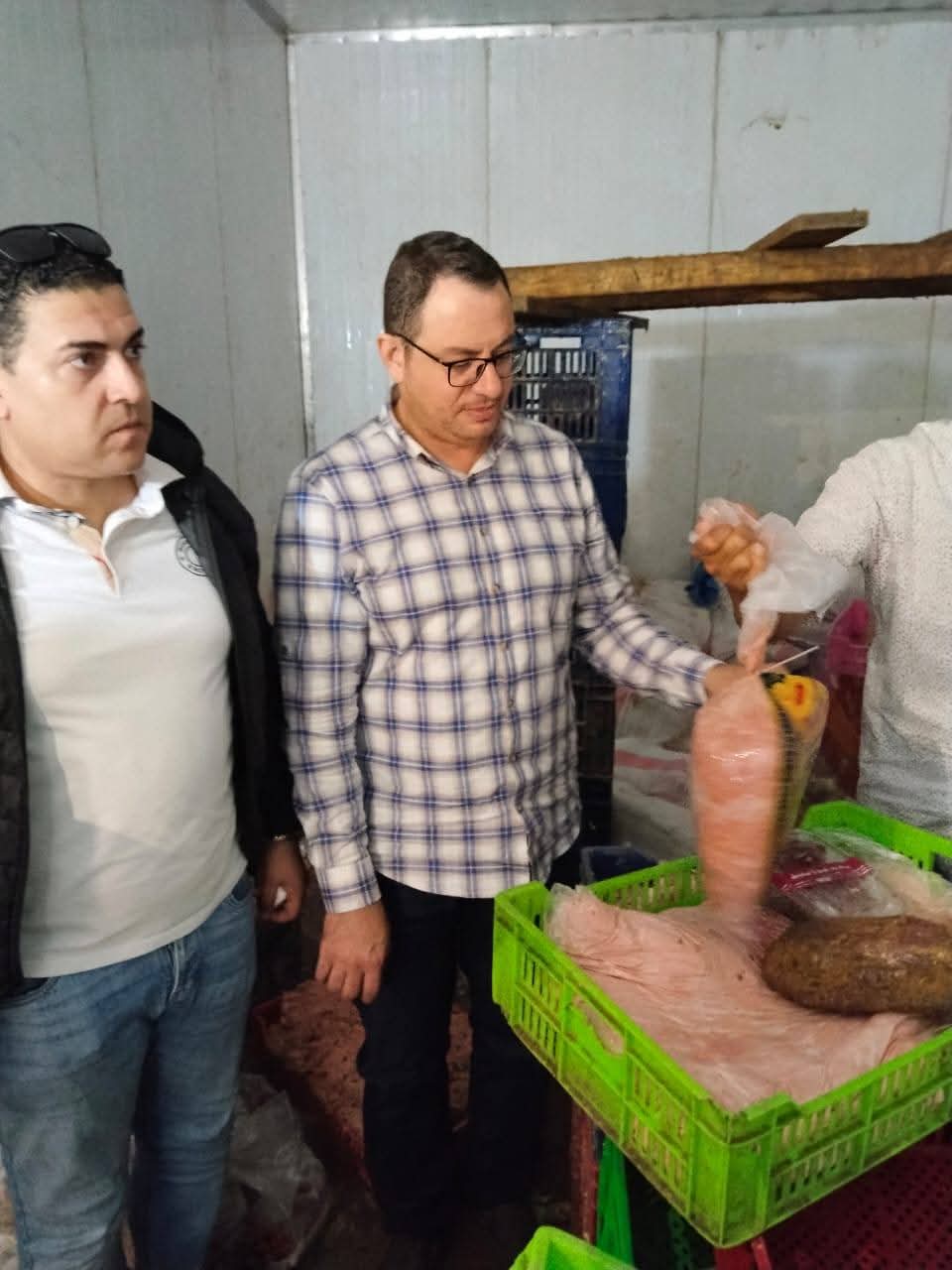 كما تم ضبط منشأة بدون ترخيص تقوم بتصنيع اللحوم والسجق في نفس المنطقة، حيث جرى التحفظ على 2.5 طن من اللحوم ومصنعاتها غير الصالحة للاستهلاك الآدمي.