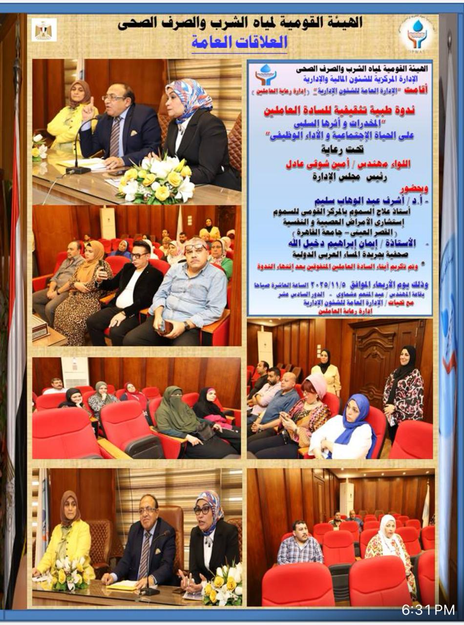 قصر العيني ينظم ندوة توعوية في هيئة مياه الشرب حول أضرار المخدرات