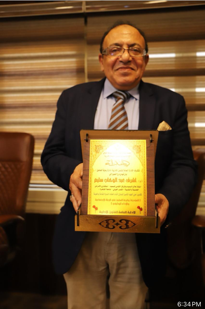 واختُتم اللقاء بتكريم الدكتور أشرف عبد الوهاب، في بادرة تقديرية من الهيئة القومية لمياه الشرب والصرف الصحي بالتعاون مع كلية الطب – قصر العيني، تأكيدًا على أهمية توحيد الجهود بين المؤسسات الوطنية والطبية في بناء مجتمع أكثر وعيًا وصحة وسلامة.