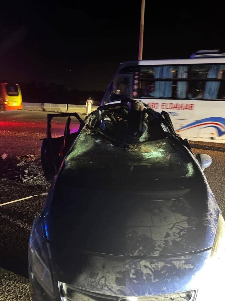 لقي شخصان مصرعهما وأصيب ثلاثة آخرون في حادث تصادم بين سيارتين على طريق 45 الدولي بدائرة قسم شرطة ثان] المنتزه شرق الإسكندرية.