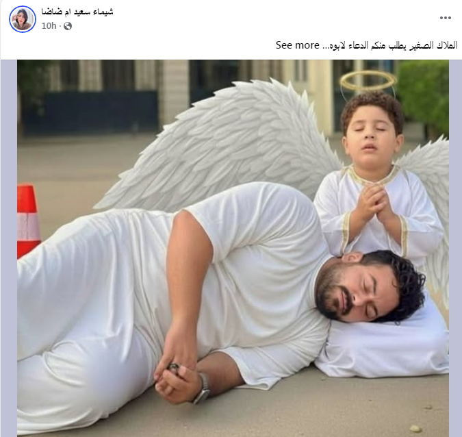 ووجهت زوجة إسماعيل الليثي، شيماء سعيد استغاثات طالبه من متابعيها الدعاء لزوجها، الذي يرقد في المستشفى بين الحياة والموت، ونشرت صورة لابنها المتوفى منذ نحو عام، وهو بزي الملائكة ويرقد معه والده، وقالت في آخر تدوينه لها: " الملاك الصغير يطلب منكم الدعاء لأبوه.. أكثروا من الدعاء أخواتي في الله"