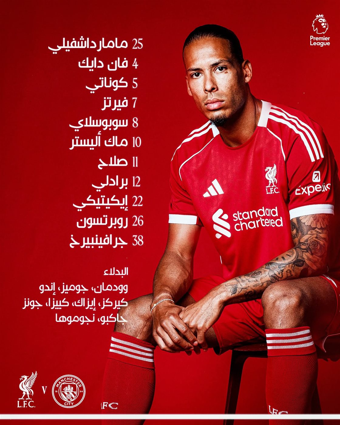 تشكيل مباراة مانشستر سيتي ضد ليفربول في الدوري الإنجليزي