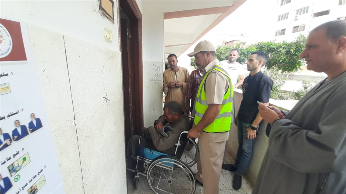 مسن يدلي بصوته على كرسي متحرك في انتخابات النواب بالبحيرة (صور)